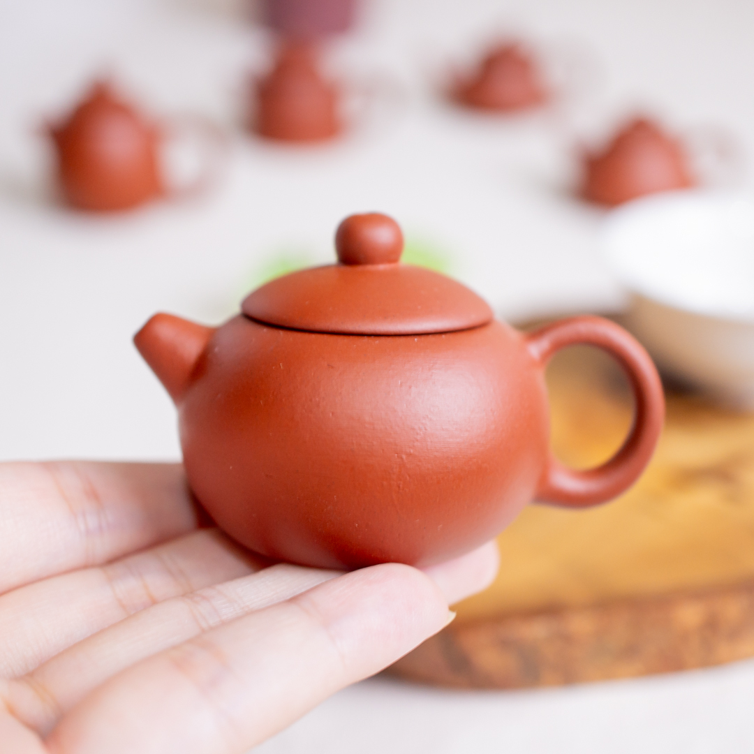 純紫砂灌膜製成的可愛小茶壺茶寵,可以作為茶桌上的好夥伴。時常用茶水澆灌會讓小茶壺變得更有光澤。
